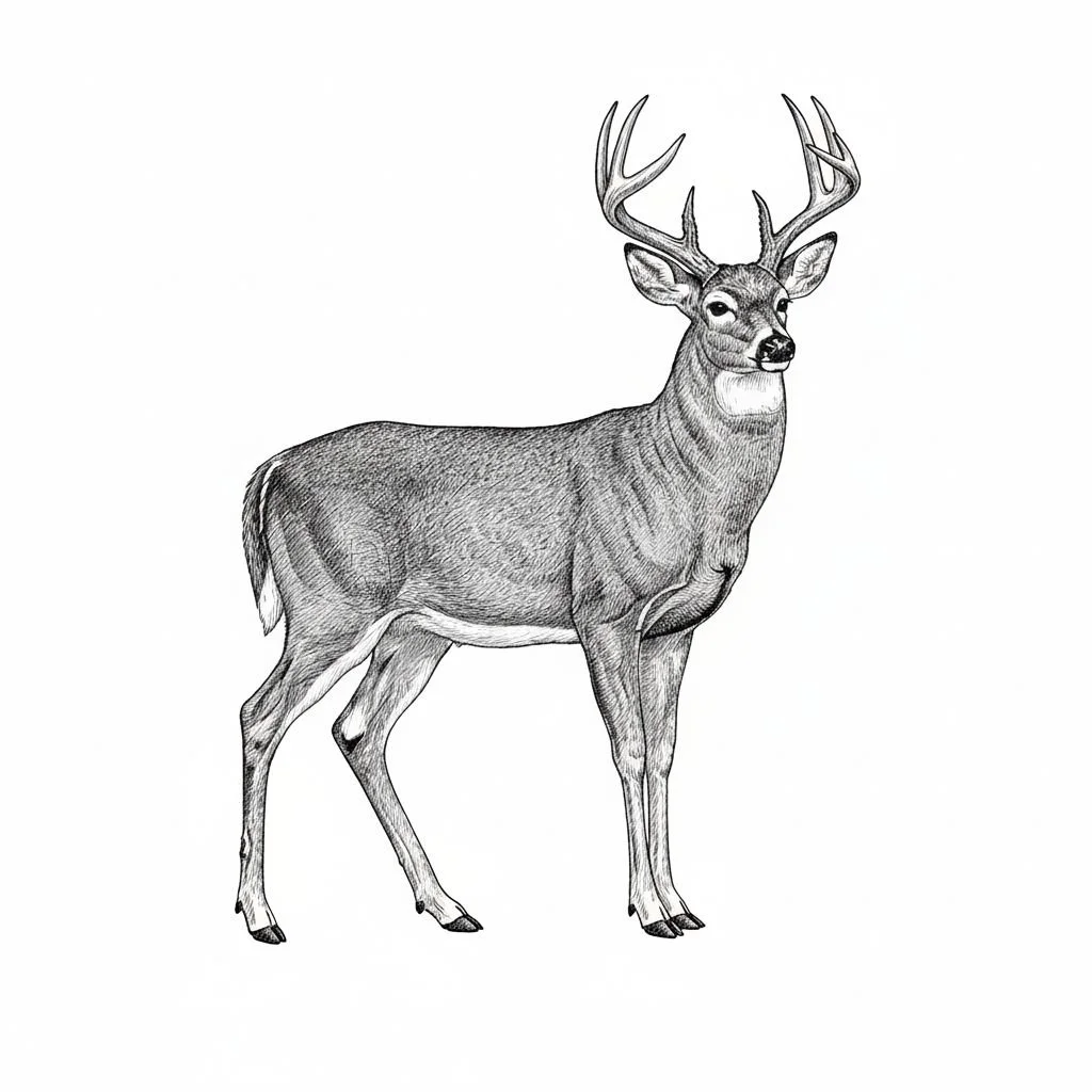 • A healthy white tailed deer in pen-and-ink style